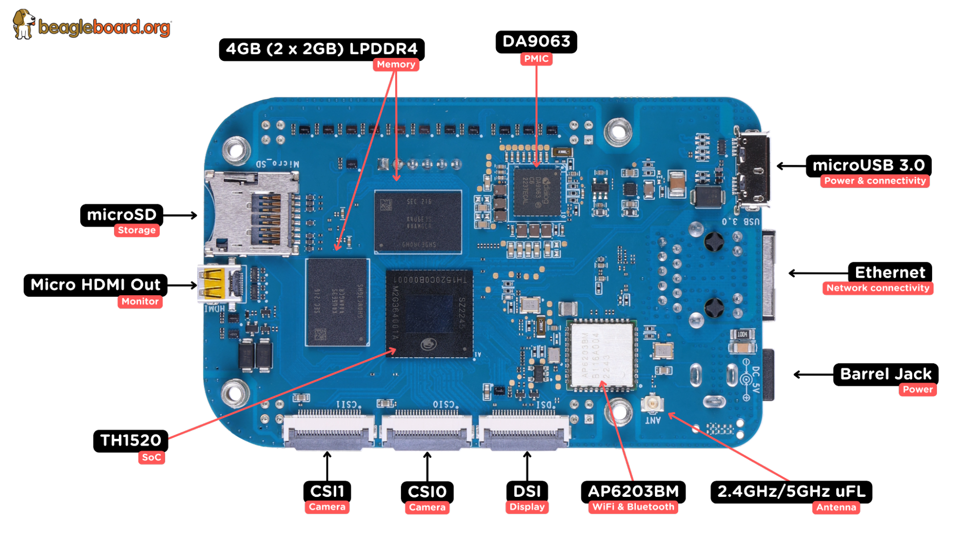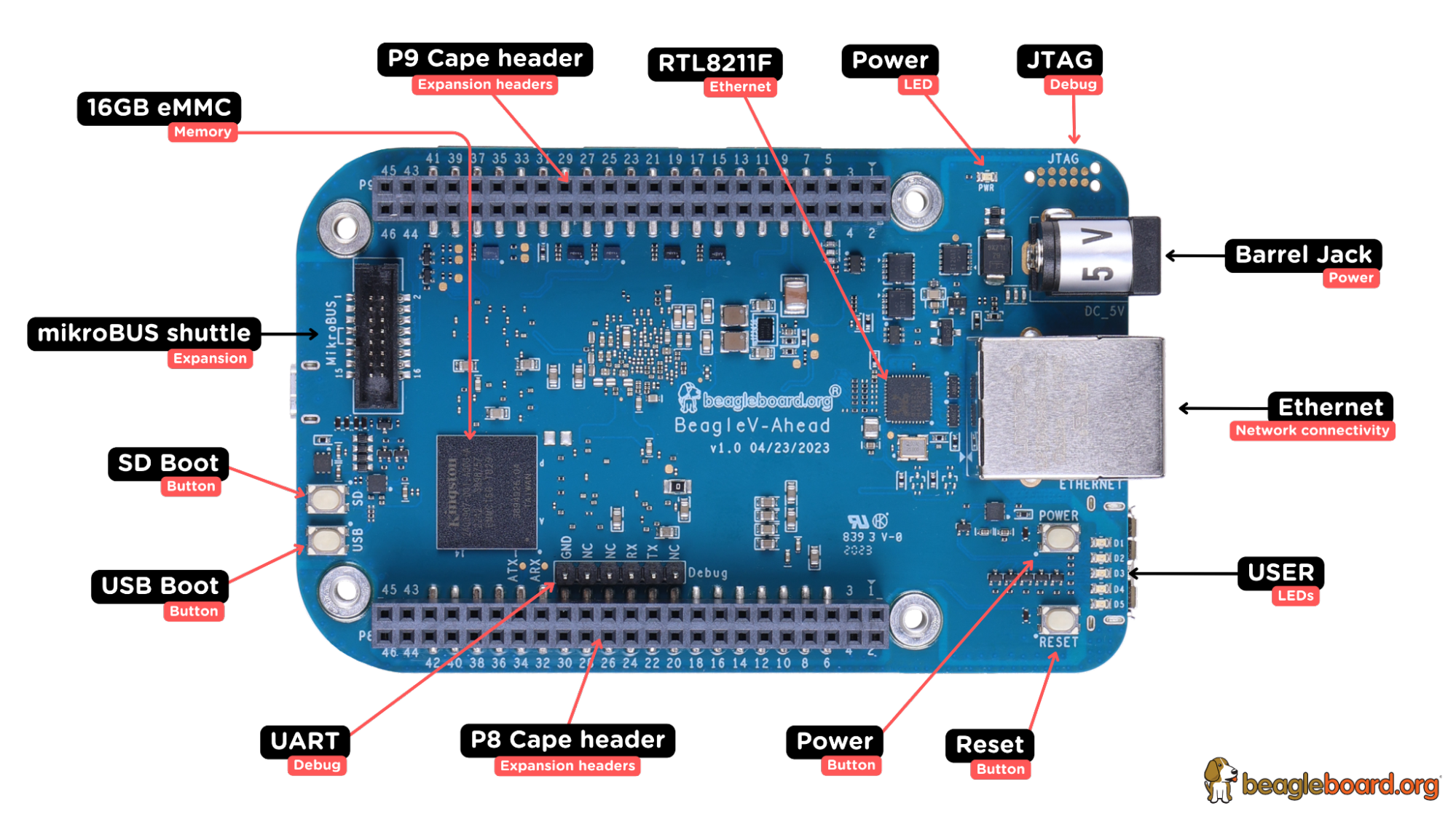 Fig 3. BeagleV®Ahead front annotated.